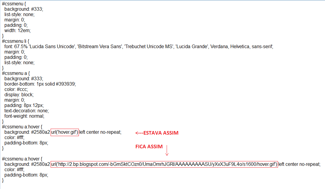 5_ Com a página do post aberta, clique com o botão direito sobre a imagem e em "copiar atalho", no bloco de notas substitua a url das imagens, faça com todas as imagens, fique atento para substituir as imagens certas, caso alguma das imagens baixadas não conste no css não tem problema. Copie o código.